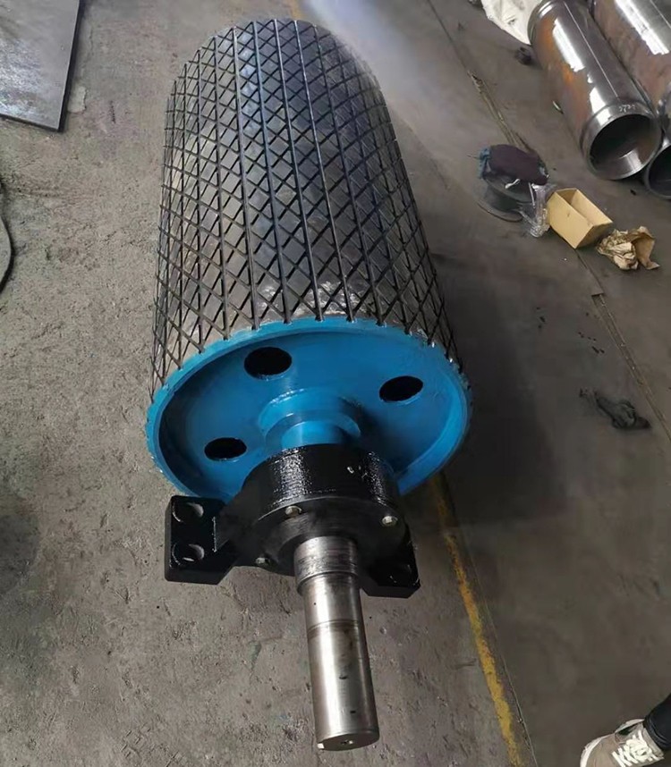 DT2型傳動滾筒從制作材料上來分有鋼板卷制焊接、鑄鋼及鑄鐵3種。從結構型式上來分有裝配輻板式、輻條式、整體輻板式3種。另外,滾筒表面也有光面、包膠、鑄膠等型式;其中,以鋼板焊接裝配輻板式鑄膠滾筒應用為廣泛。
