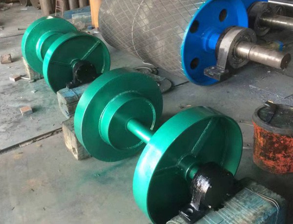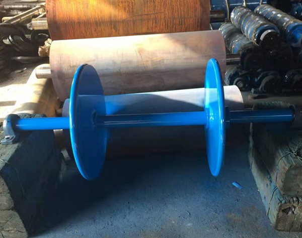 壓帶輪:包括左皮帶支架和右皮帶支架,所述左、右皮帶支架分別對稱設(shè)置在皮帶的兩側(cè),在左皮帶支架和右皮帶支架之間可轉(zhuǎn)動的連接有擋輪,所述擋輪為圓柱形且水平設(shè)置在皮帶的上方。在左皮帶支架和右皮帶支架上還對應(yīng)設(shè)有可轉(zhuǎn)動的左轉(zhuǎn)輪和右轉(zhuǎn)輪,所述左轉(zhuǎn)輪和右轉(zhuǎn)輪分別設(shè)置在豎直方向上且均與皮帶的邊沿接觸。本實用新型的壓帶輪機構(gòu)能夠完全限制皮帶的跳動,使得皮帶被牢牢的限制在設(shè)定的空間范圍內(nèi),避免了物料滑出皮帶,而且避免了卡帶的情況,保障了皮帶的正常運行。壓帶輪主要用于改變輸送帶的運行方向,壓帶輪用于輸送帶上表面(承載面)。